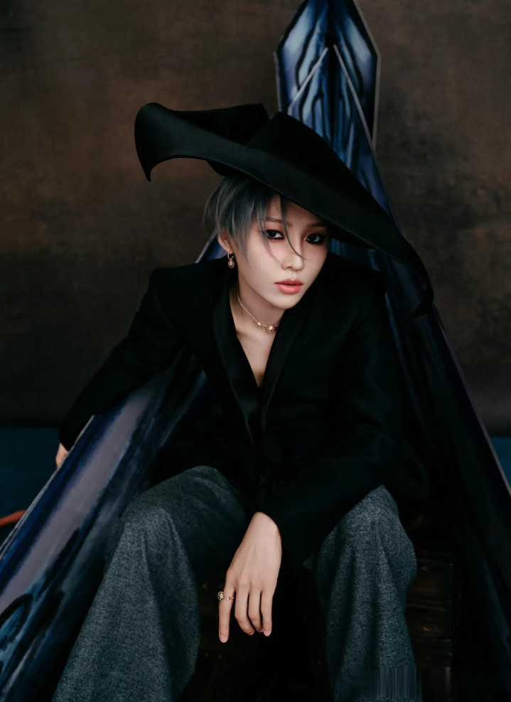作为Dio品牌大使,刘雨昕延续了酷飒造型,化了烟熏妆搭配黑色帽子,倒是颇有几分魔女的既视感。