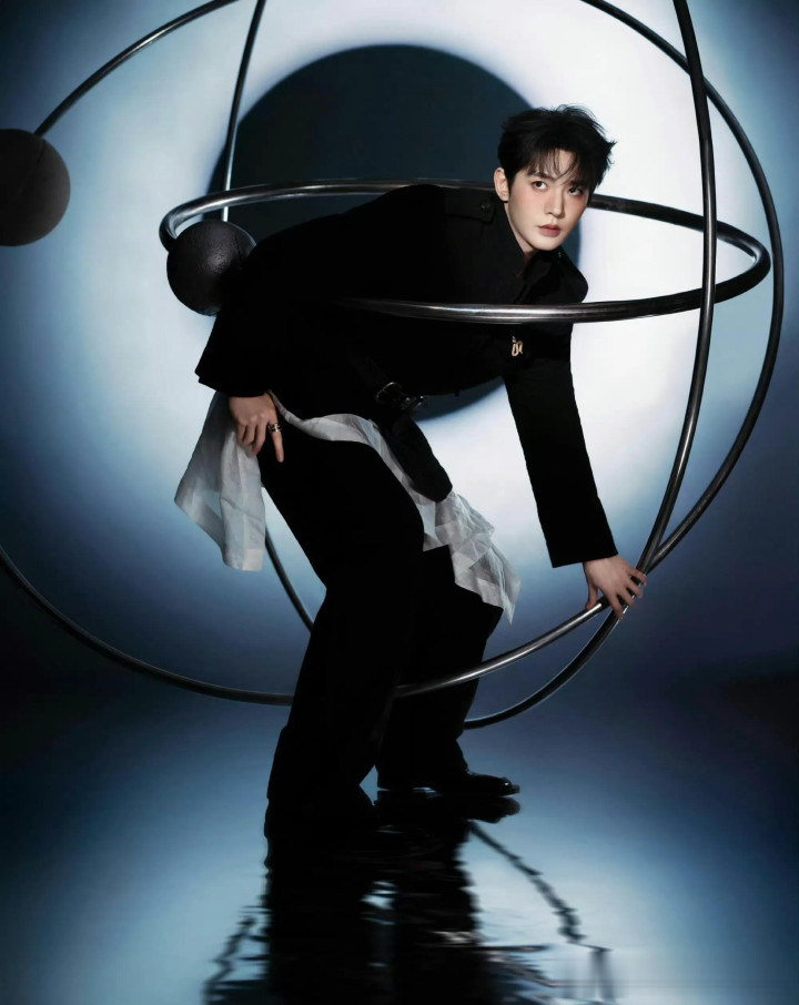 邓为变成科技感型男,真的是又酷又飒,他还特地做了断眉的造型,从妆容到服装,都让人眼前一亮。