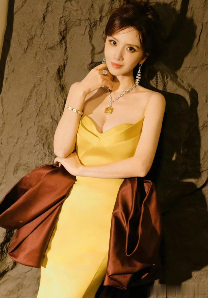 虽然不怎么拍戏了,但张萌的出图速度也完全不输,她身穿鹅黄色抹胸裙,大秀事业线,裙子后面还有褐色的蝴蝶结设计,佩戴珠宝项链,真的富贵迷人眼。